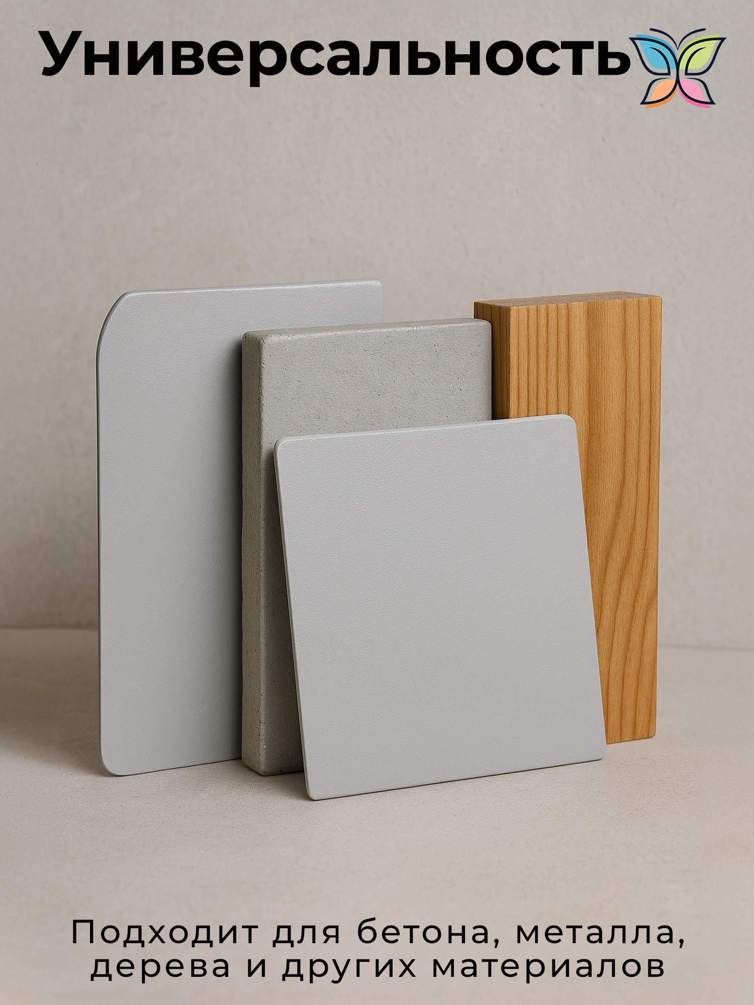 Универсальность: Подходит для бетона, металла, дерева, асфальта и фасадов.